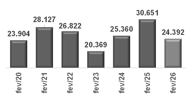 • Nesse sentido, o resultado não só se situou abaixo de 2025 (+30.651) como também da média entre 2020 e 2025 (+25.872);